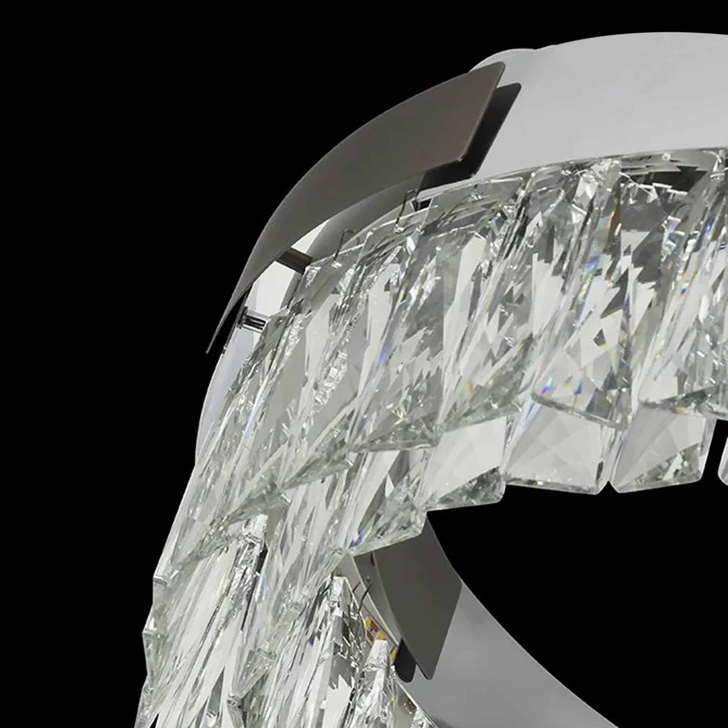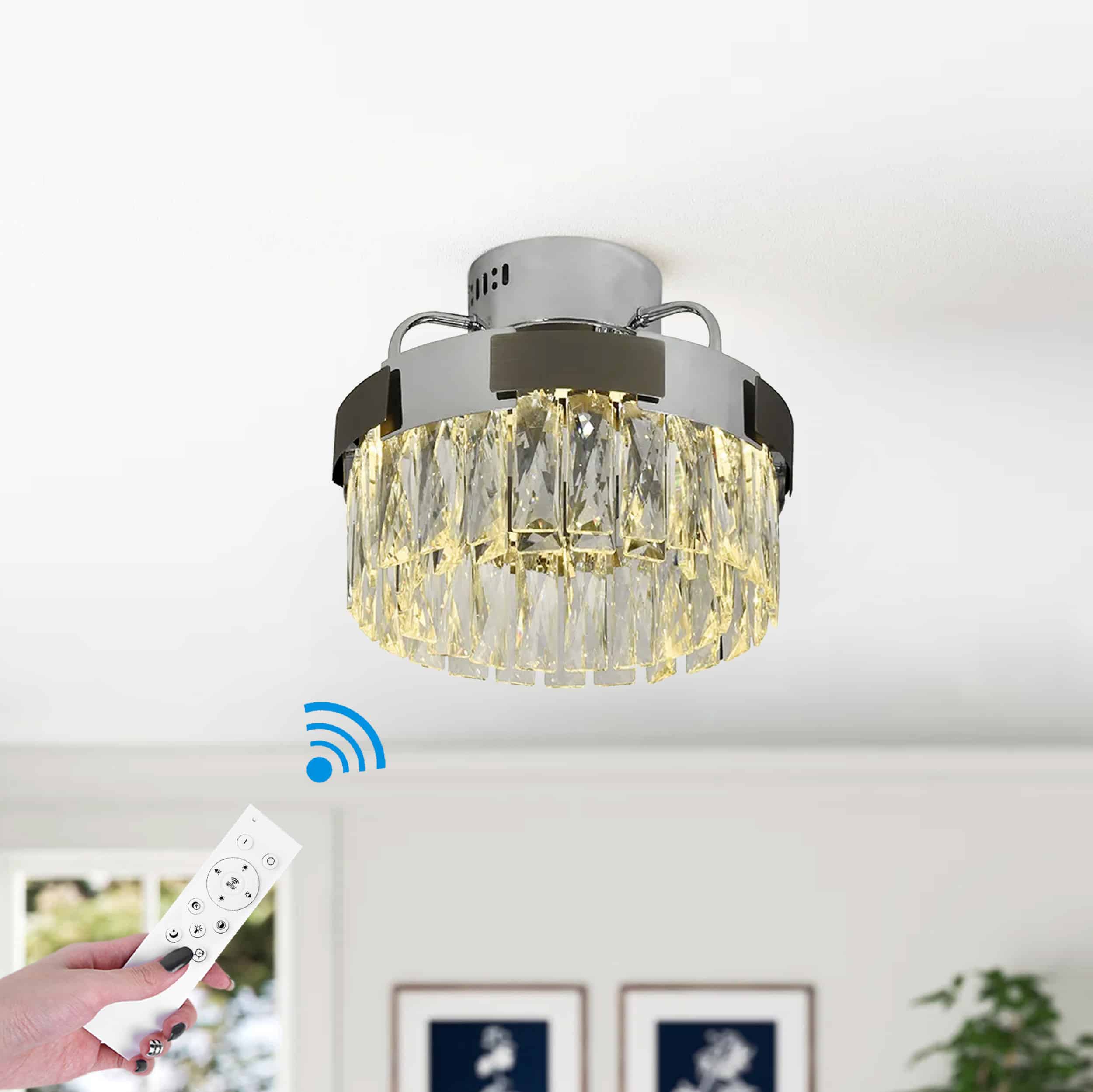 Celina kristallplafond är en sofistikerad belysningsdel tillverkad av polerat rostfritt stål och prydd med K9-kristaller. Dess moderna design passar olika inredningsstilar, medan dess 30 cm diameter gör den mångsidig för olika rumsstorlekar. Med tre justerbara ljusfärger – varm, sval och en blandning av båda – möjliggör den skräddarsydda ljusstämningar. Denna lampa ger en chic gnistra och förhöjer alla utrymmen med en blandning av praktisk och lyx.