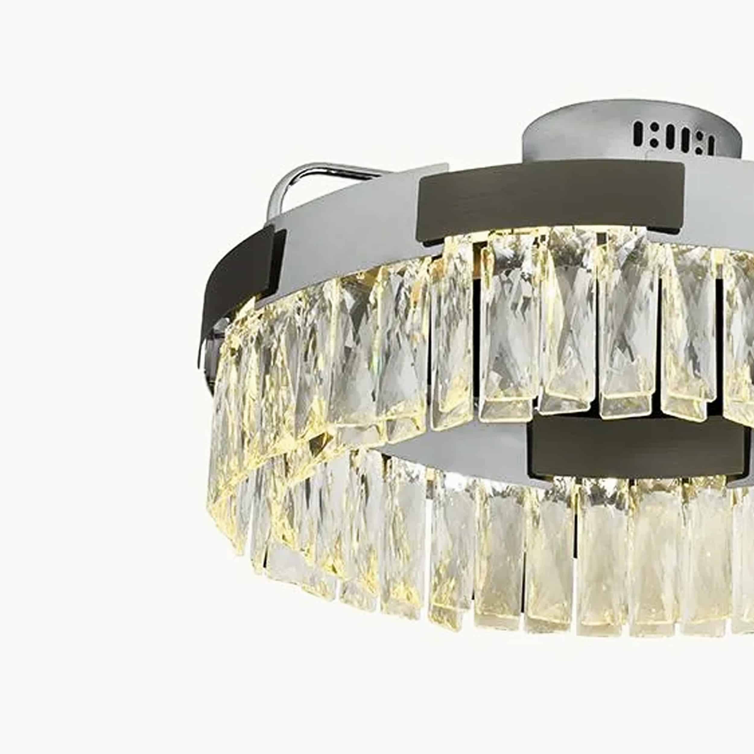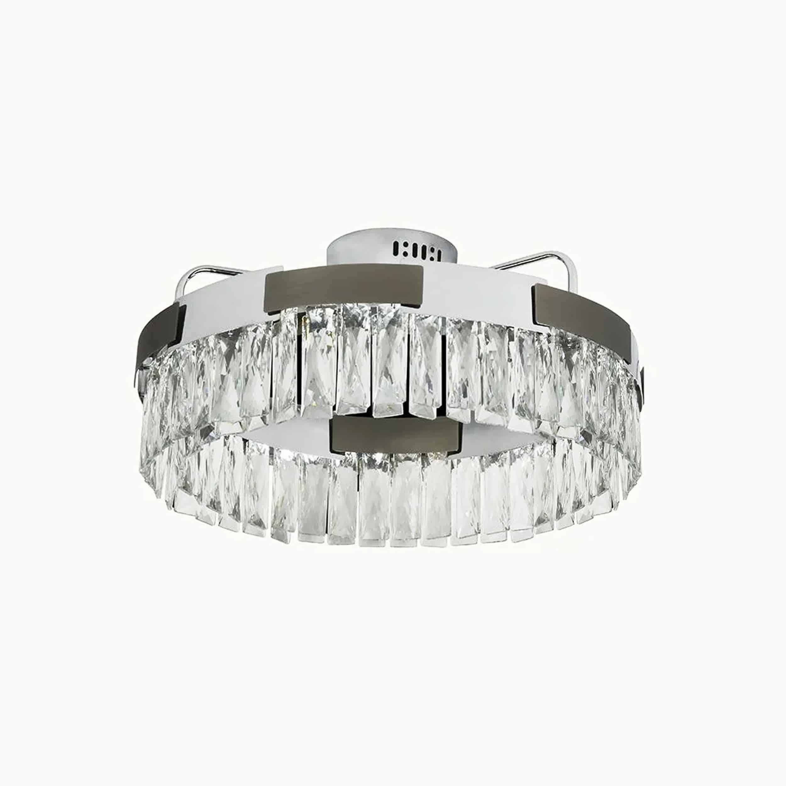 Celina kristallplafond är en sofistikerad belysningsdel tillverkad av polerat rostfritt stål och prydd med K9-kristaller. Dess moderna design passar olika inredningsstilar, medan dess 50 cm diameter gör den mångsidig för olika rumsstorlekar. Med tre justerbara ljusfärger – varm, sval och en blandning av båda – möjliggör den skräddarsydda ljusstämningar. Denna lampa ger en chic gnistra och förhöjer alla utrymmen med en blandning av praktisk och lyx.