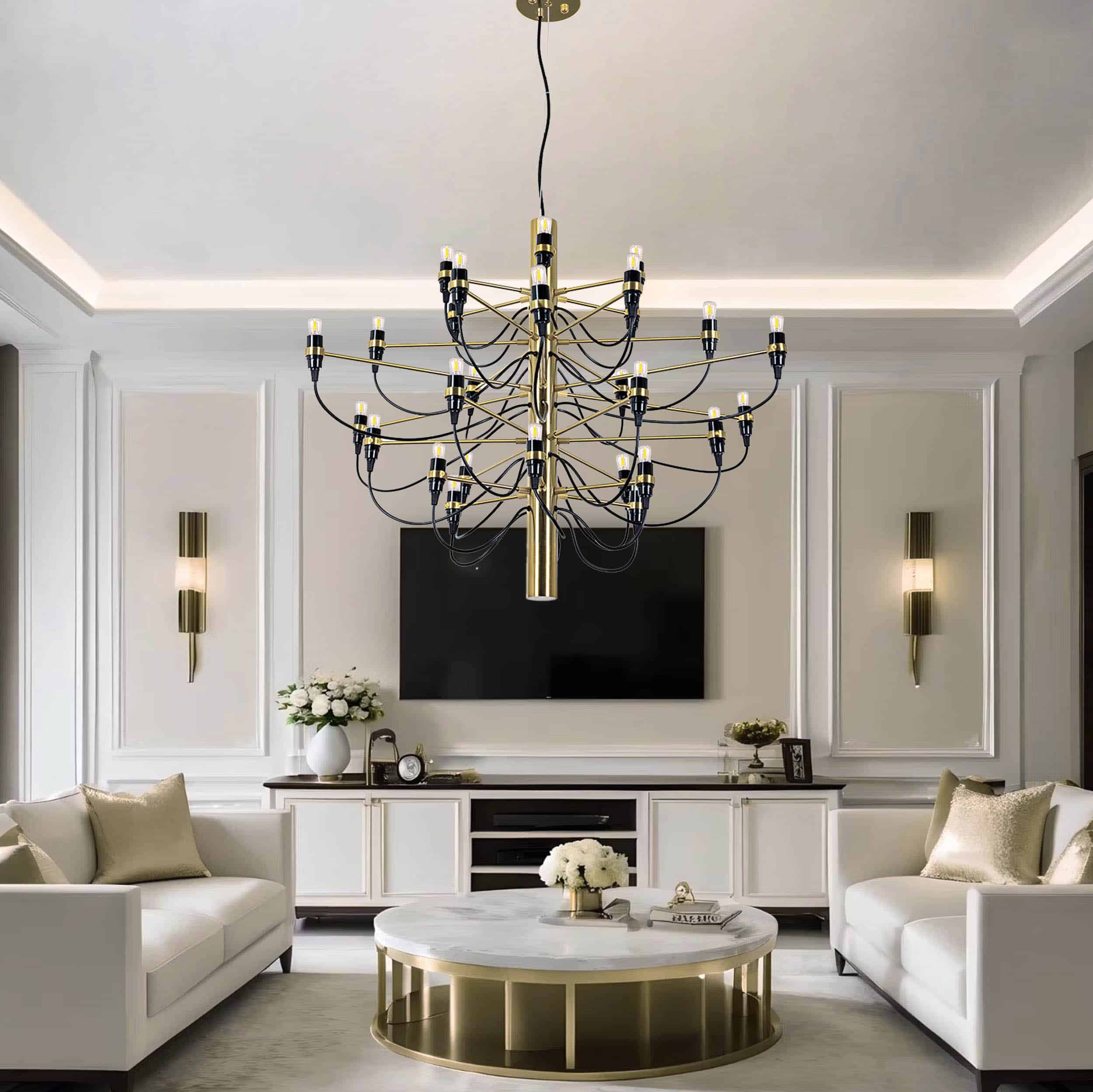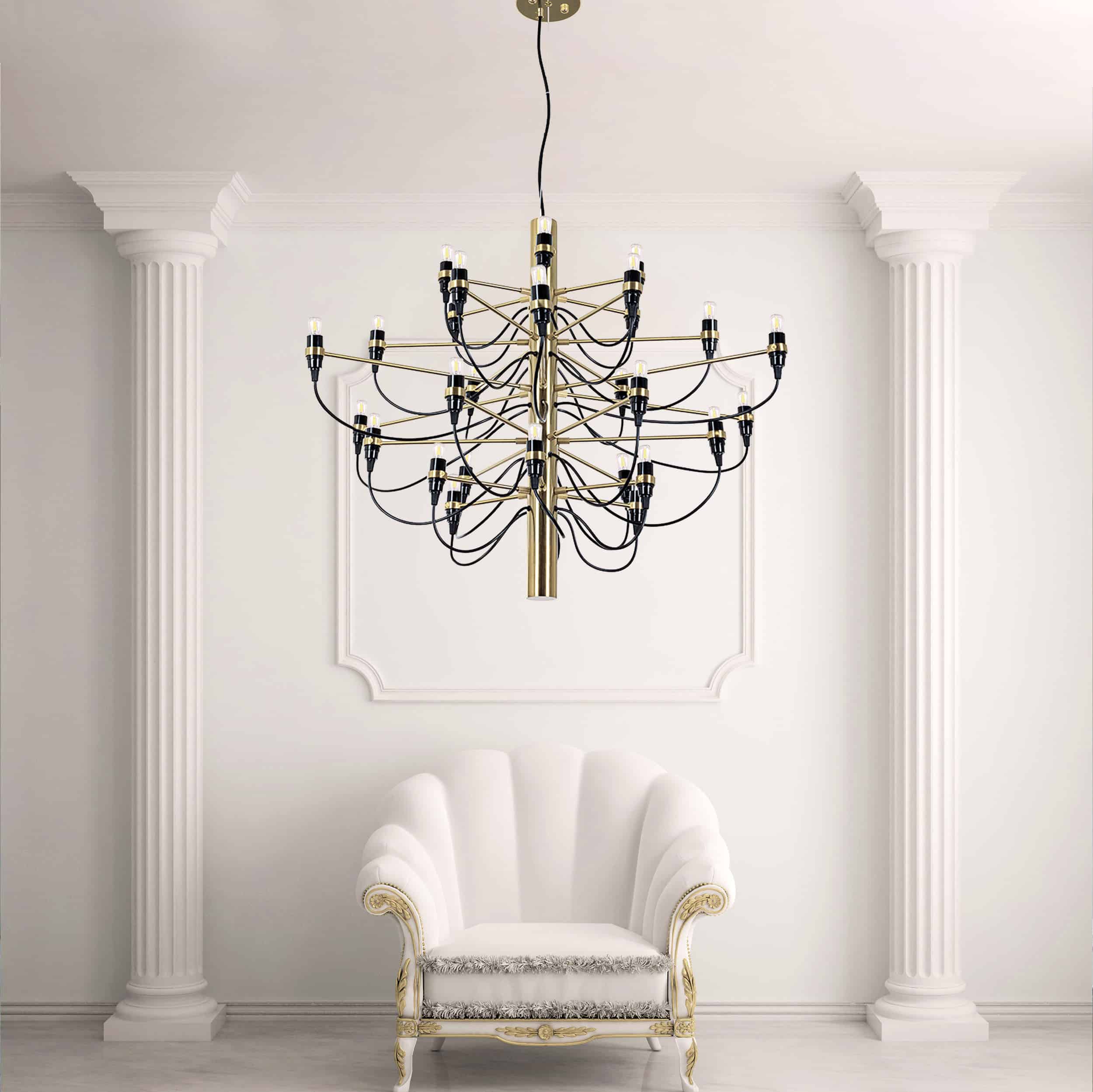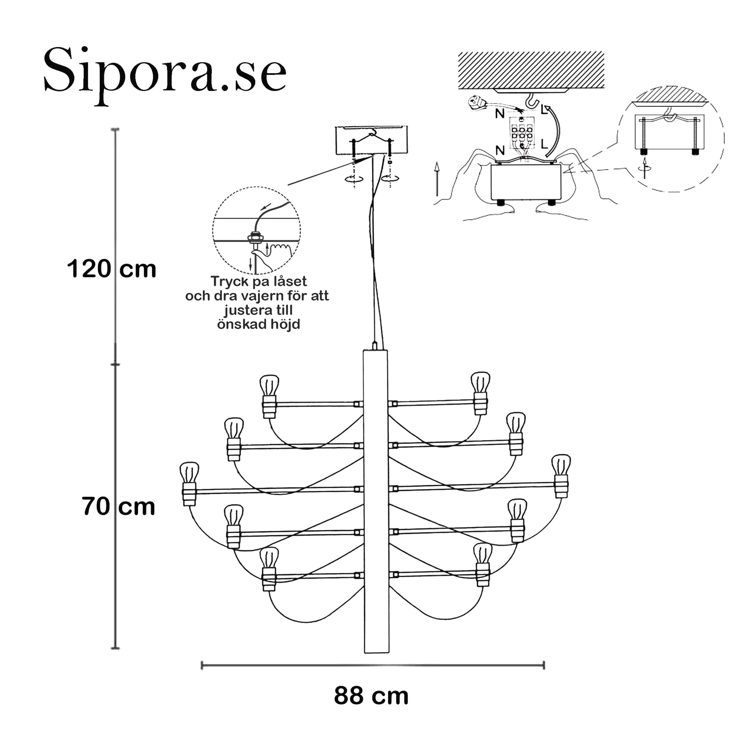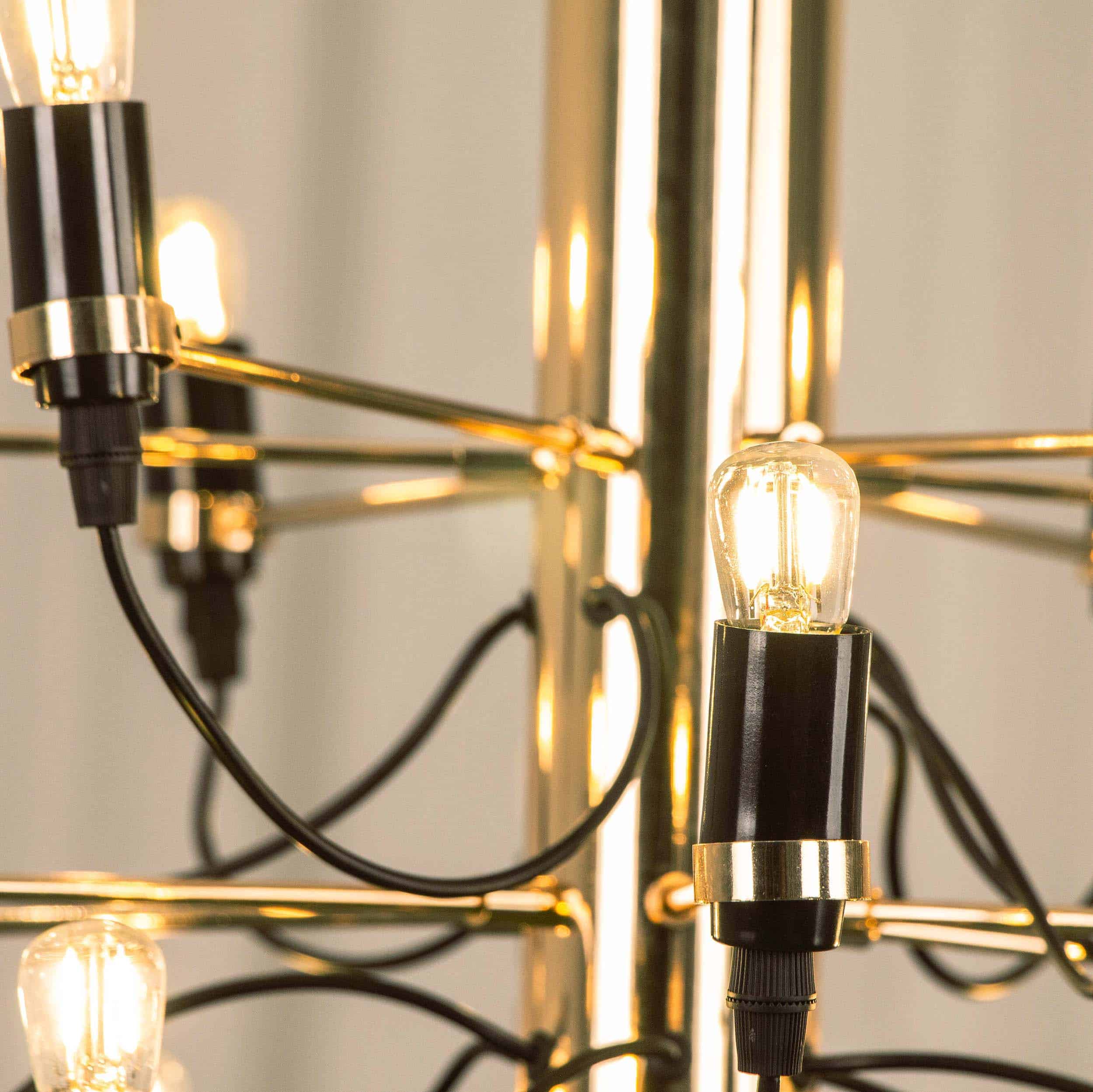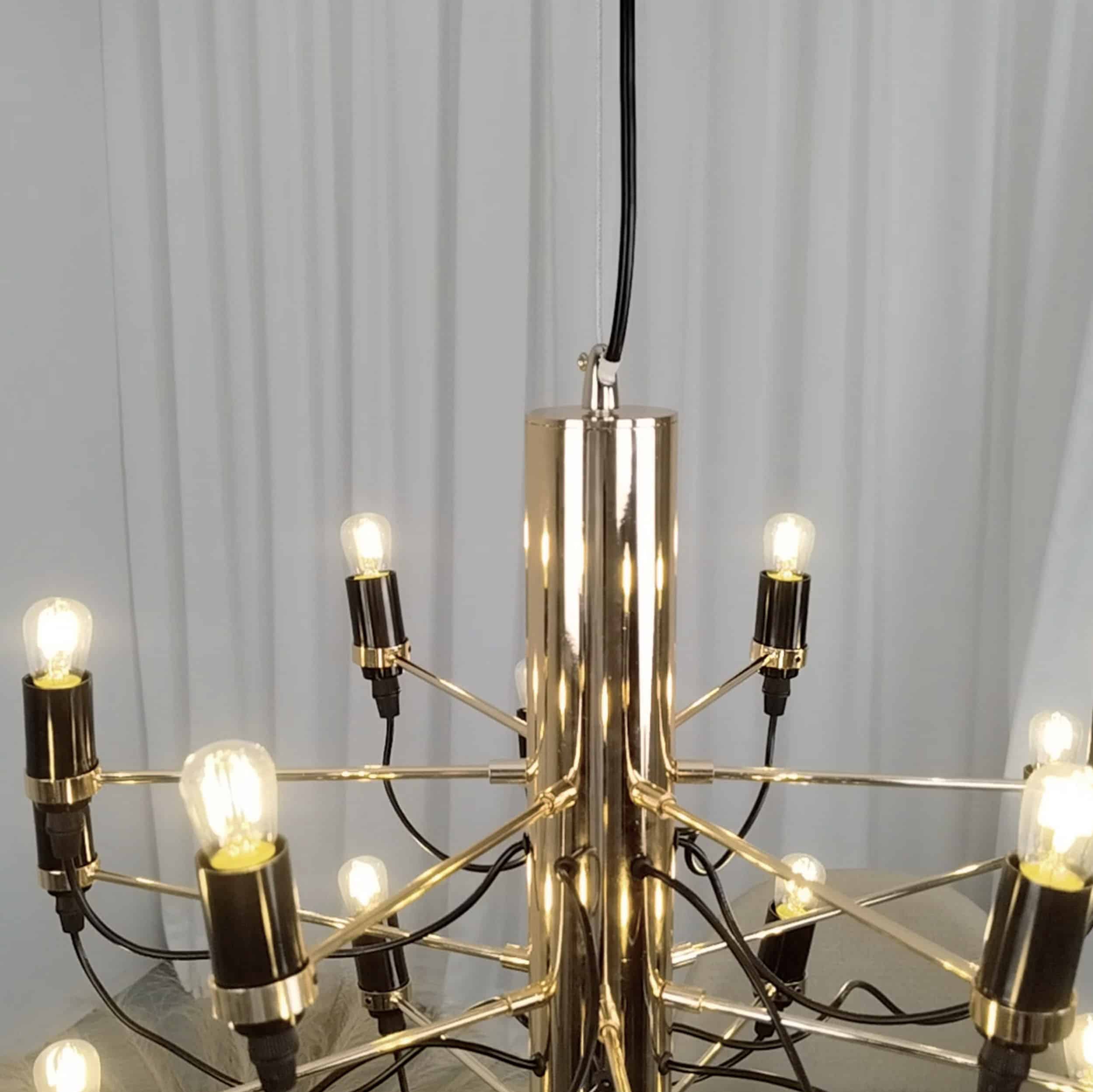 Denna version med 30 ljuskällor är precis som sin lillasyster tillverkad i metall med kromfärgade armar och 30 ljuskällor, som även ingår i priset.