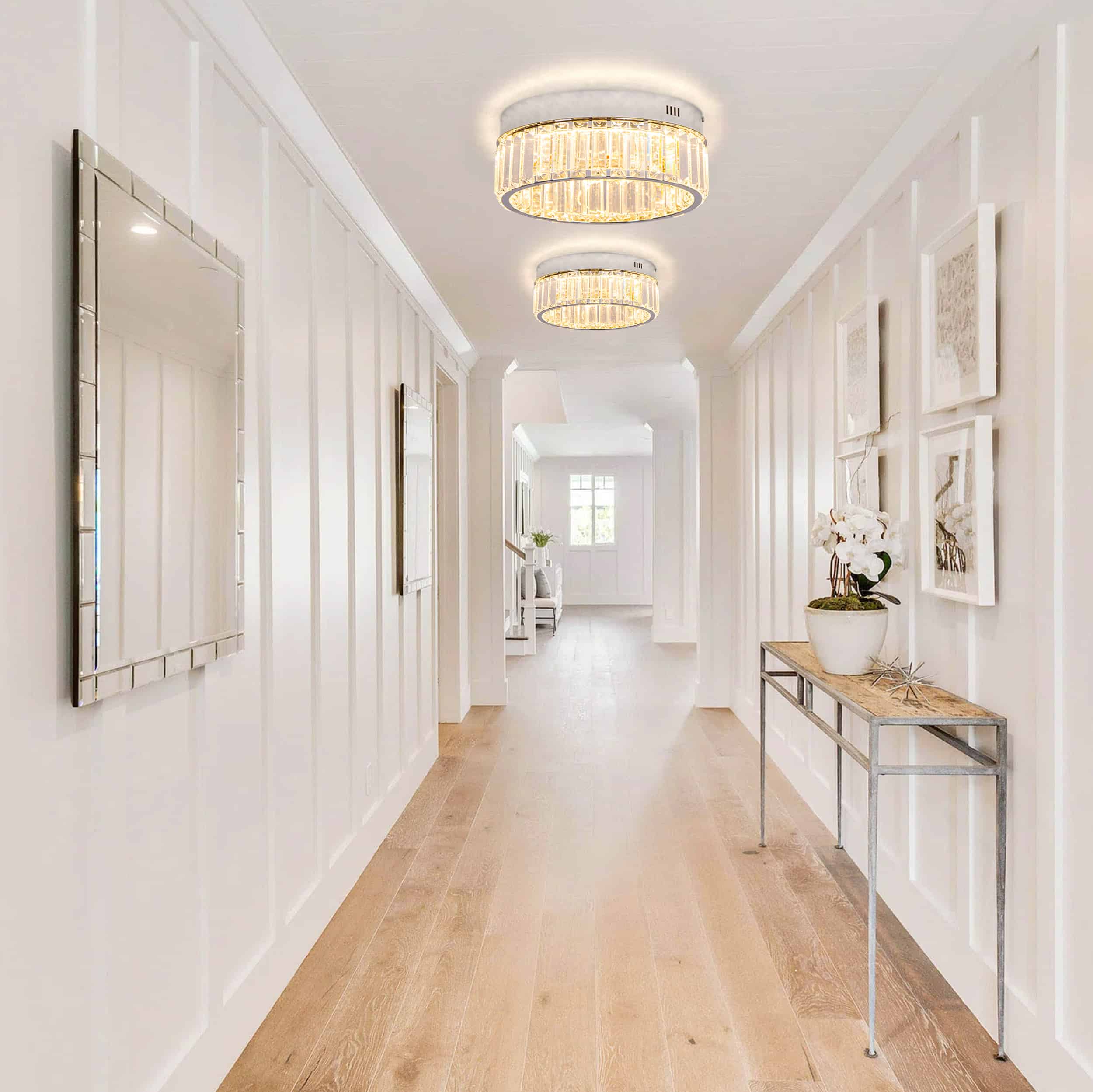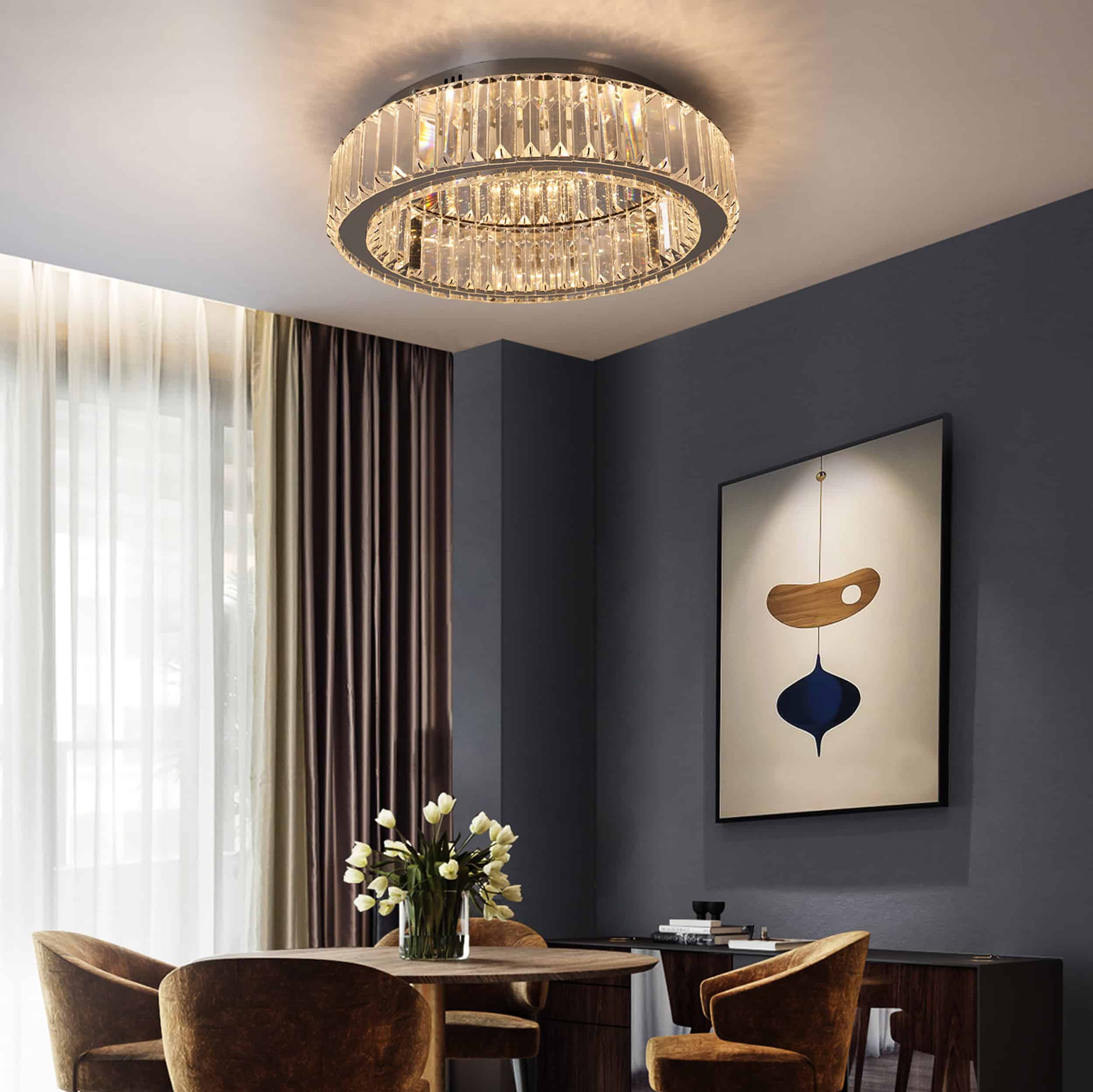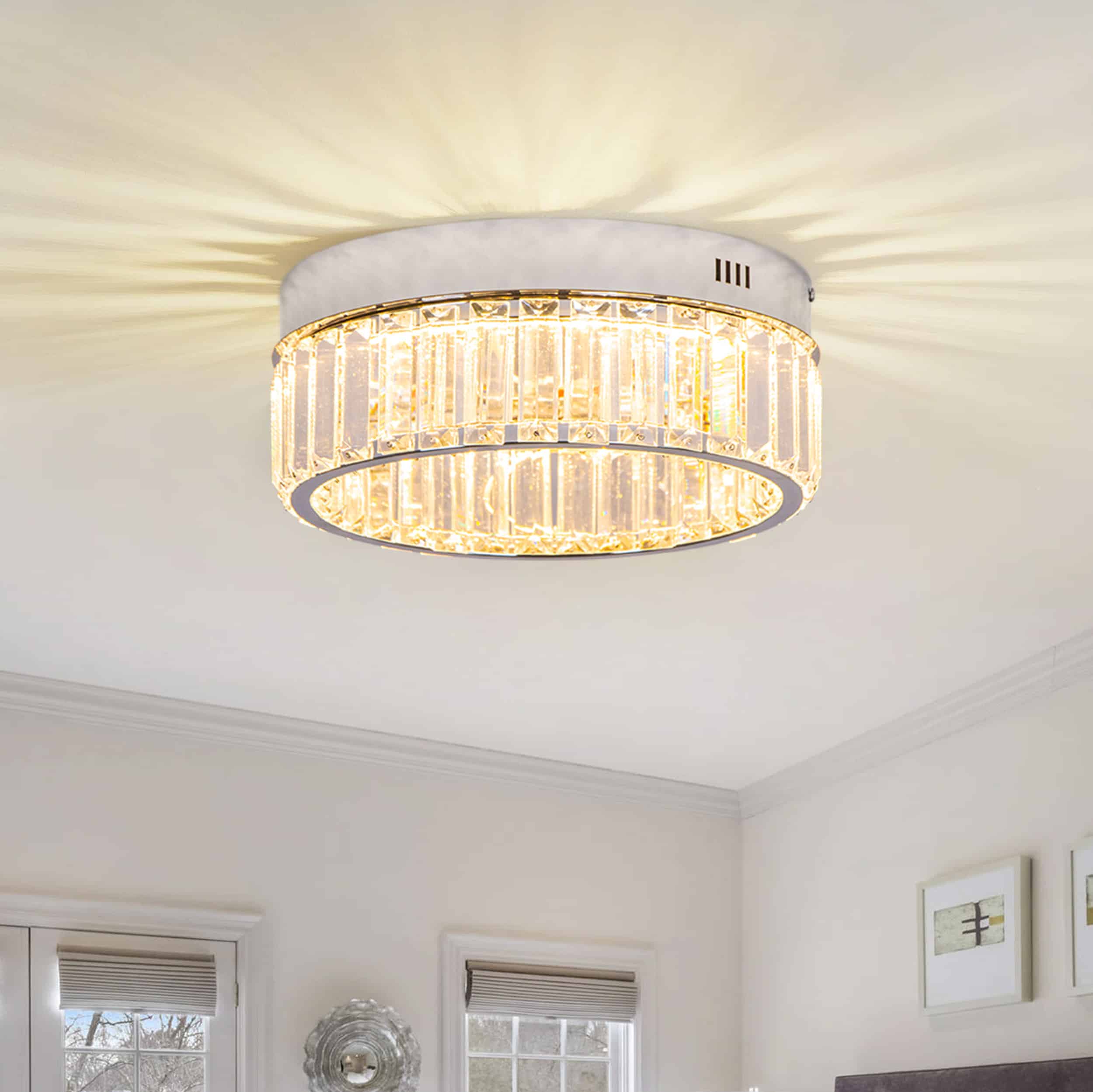 Tyra Takplafond kombinerar stil och funktionalitet med sin moderna design och krom-finish. Med en diameter på 30cm och en höjd av 12cm är den perfekt för både små och stora utrymmen. Lampan är utrustad med energieffektiv LED. Den har tre färgtemperaturalternativ (3000K, 4000K, 5000K) via en enkel switch, vilket gör att du kan skapa den perfekta stämningen i ditt hem. De funklande kristallerna tillför en touch av elegans och gör den till en utmärkt val för sovrum,kök eller hall.