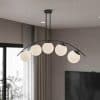 Modern variant av en ljuskrona och taklampa som påminner om molekyler som flyter på den långsträckta Mattsvartfärgade metallstommen. En elegant taklampa som med sin stilrena design passar i de allra flesta utrymmena. Förslagsvis i ett rum där du behöver extra bra belysning då lampan har 16 ljuskällor.